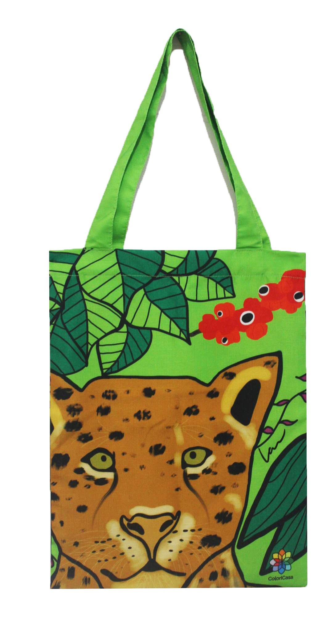 Bolsa Sacola Feminina De Lado Ecobag Tote Ombro Dobrável Multiuso Tecido Forro Interno Reforçada Onça Natureza ColoriCasa